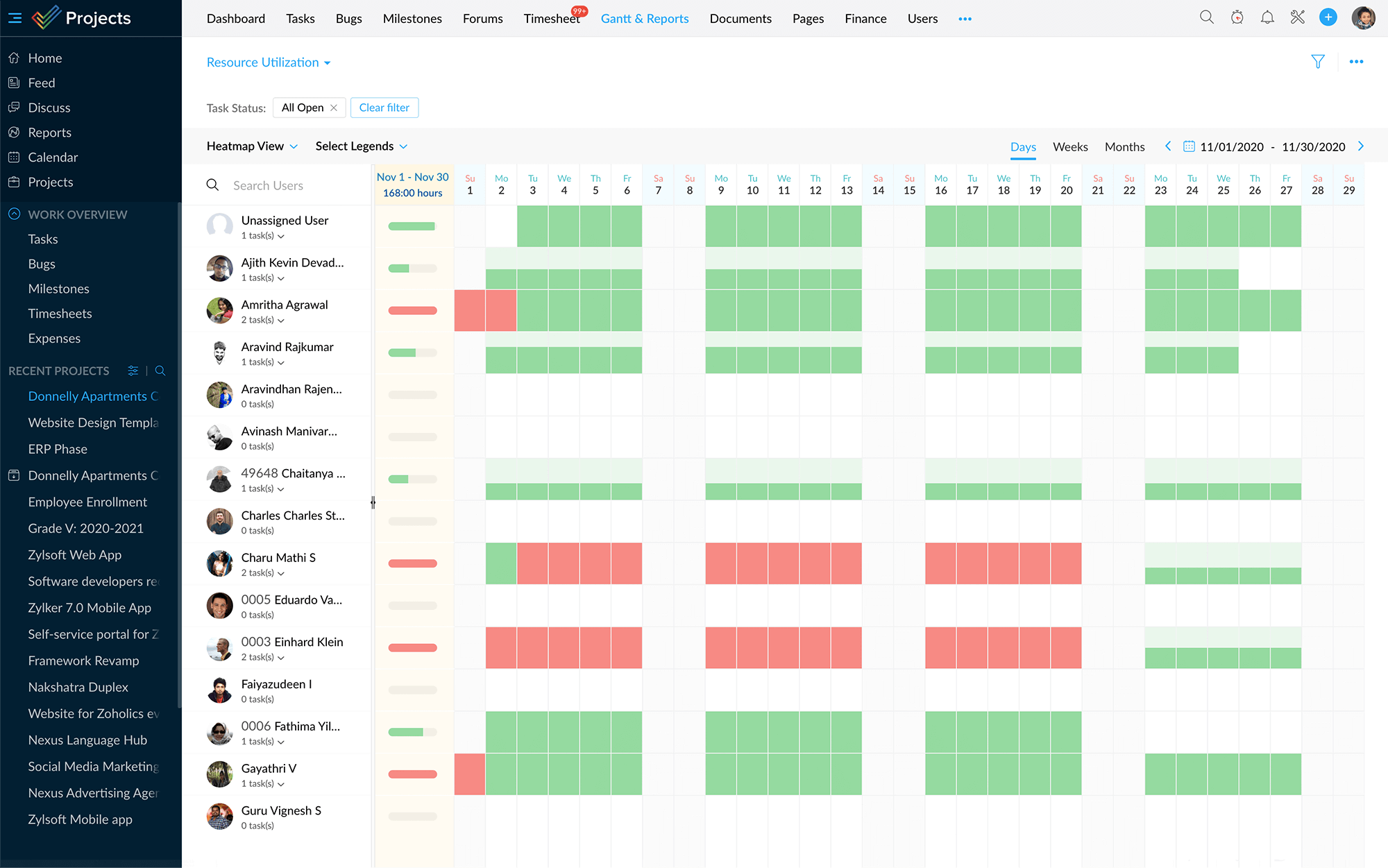 Le sue funzionalità includono la gestione dei carichi di lavoro, la centralizzazione dei documenti e il tracciamento delle risorse, permettendo ai team di lavorare in modo efficiente e senza sprechi di tempo. Se integrato con altri strumenti Zoho e software di terze parti, come Google Drive e Slack, risulta completo e si adatta a diverse flussi di lavoro.